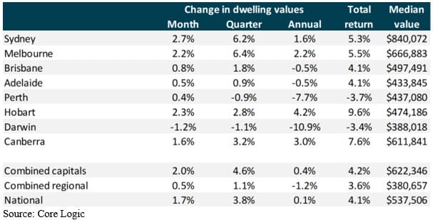 According to data from CoreLogic Inc., national property values jumped 1.7 per cent last month.