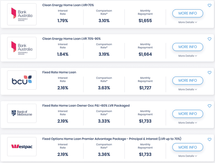 Here are InfoChoice's top five fixed rate home loans for Property Investors based on three year, $400,000 loan: