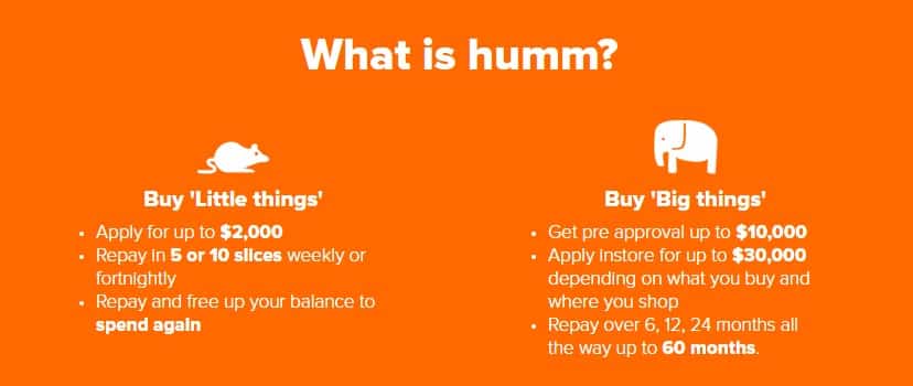 Humm targets white good retailers and is designed like a line of credit. Humm was previously known as Certegy Ezi-Pay.